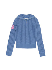 Piv'vee Cable Knit Half Zip Sweater-Blue