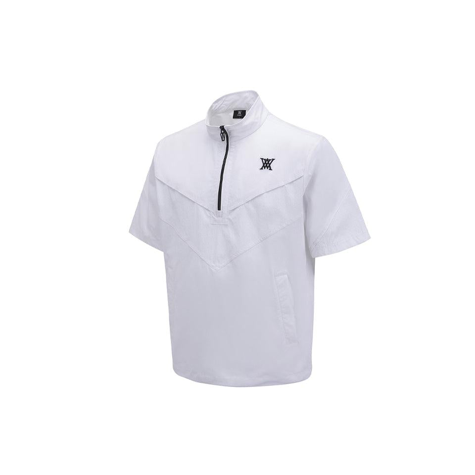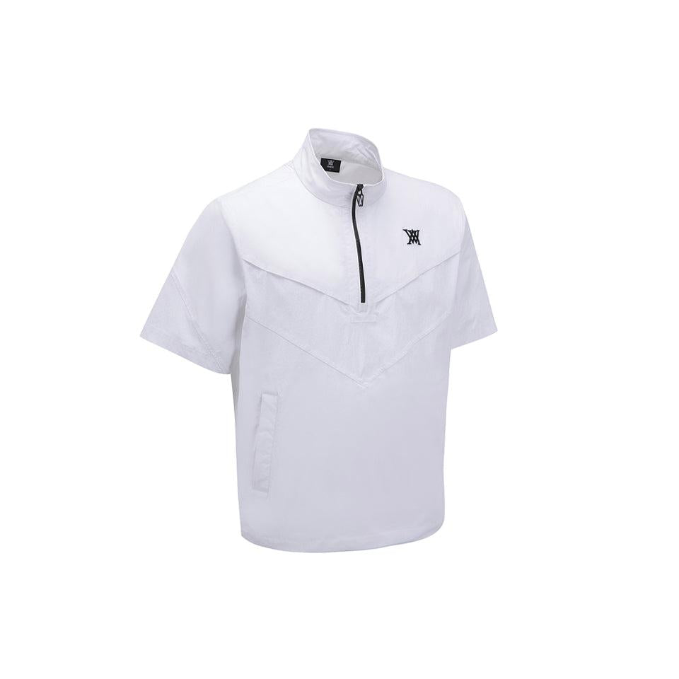This is a short-sleeved anorak made of lightweight and stretchy nylon. There is ventilation on the upper chest, and the back panel is made of perforated material,