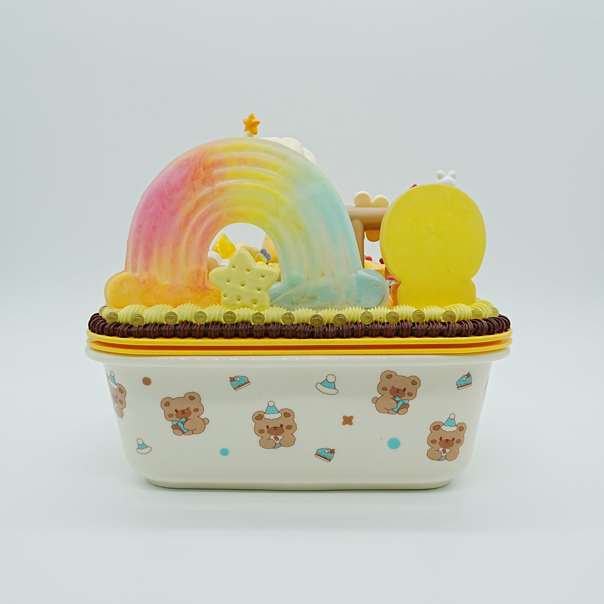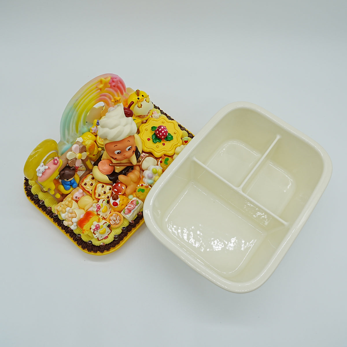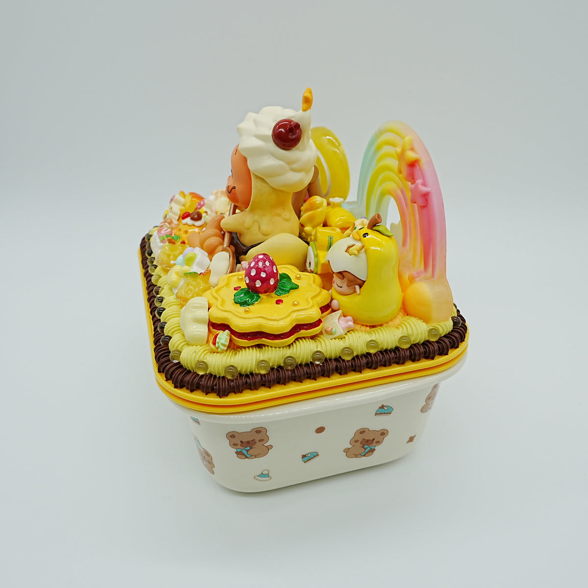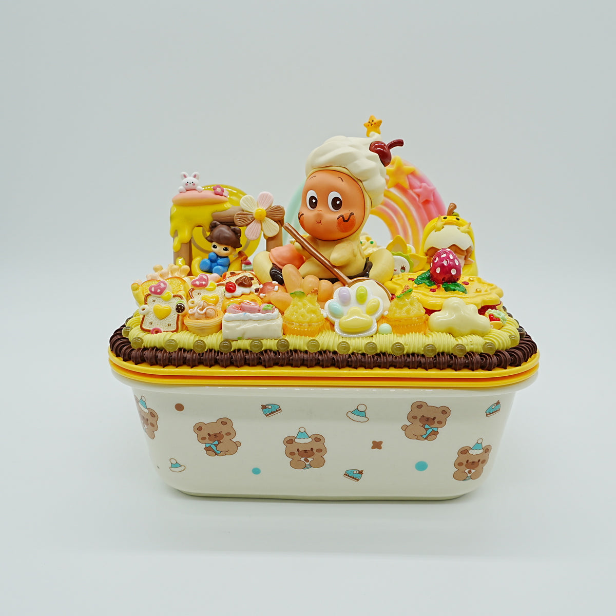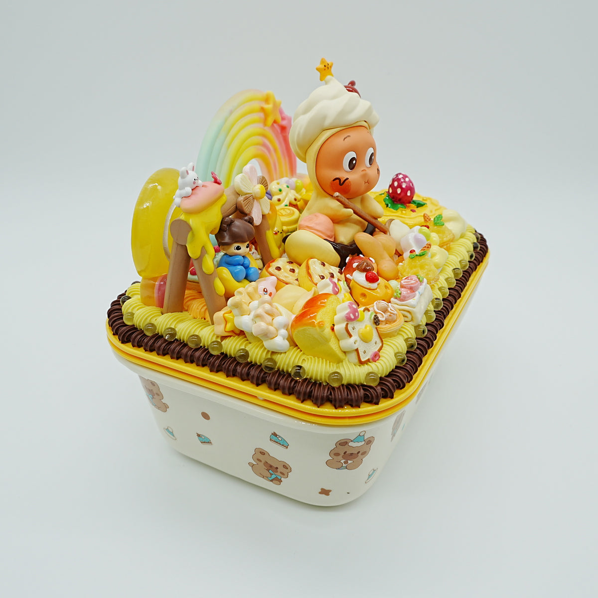 Note: Figure is permanently attached. Hand-wash recommended (cream glue decorations are dishwasher-unsafe).