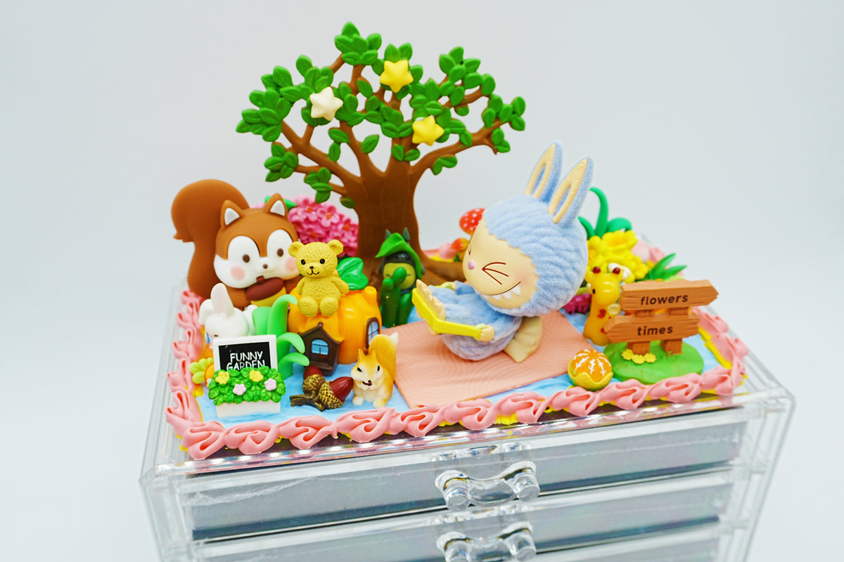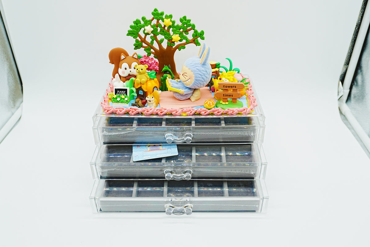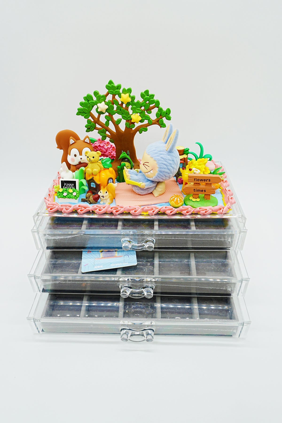 This exquisitely crafted 3-tier acrylic drawer organizer combines adorable aesthetics with practical organization. Each piece is meticulously handmade using premium cream glue and features an authentic Labubu figure – perfect for fans and collectors!