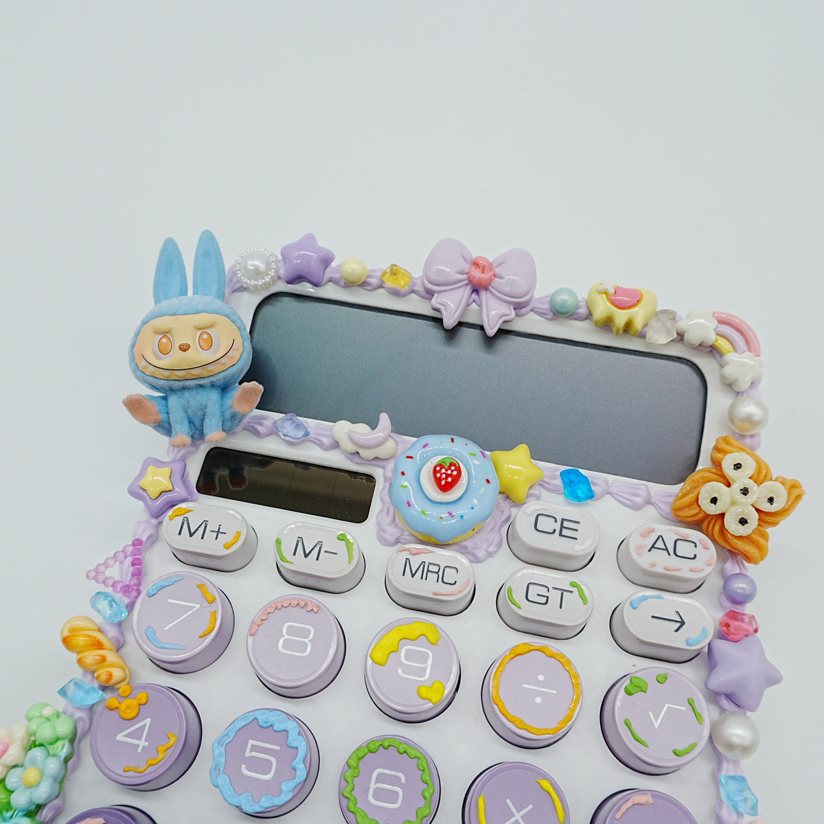 Handmade Cream Glue Calculator with Mini Labubu Figure