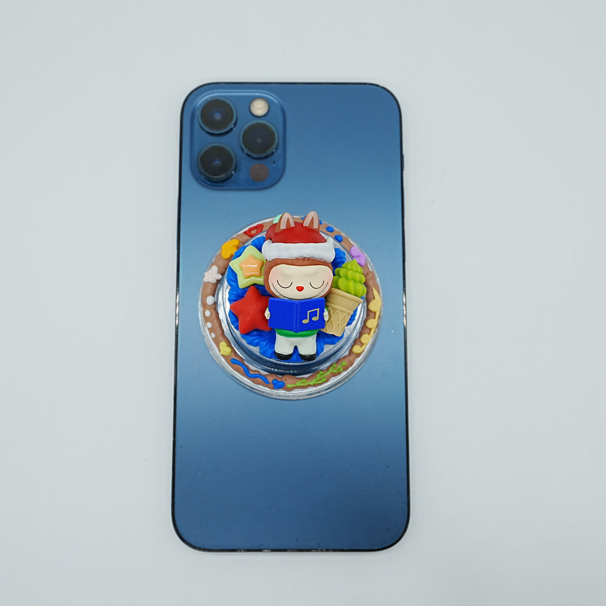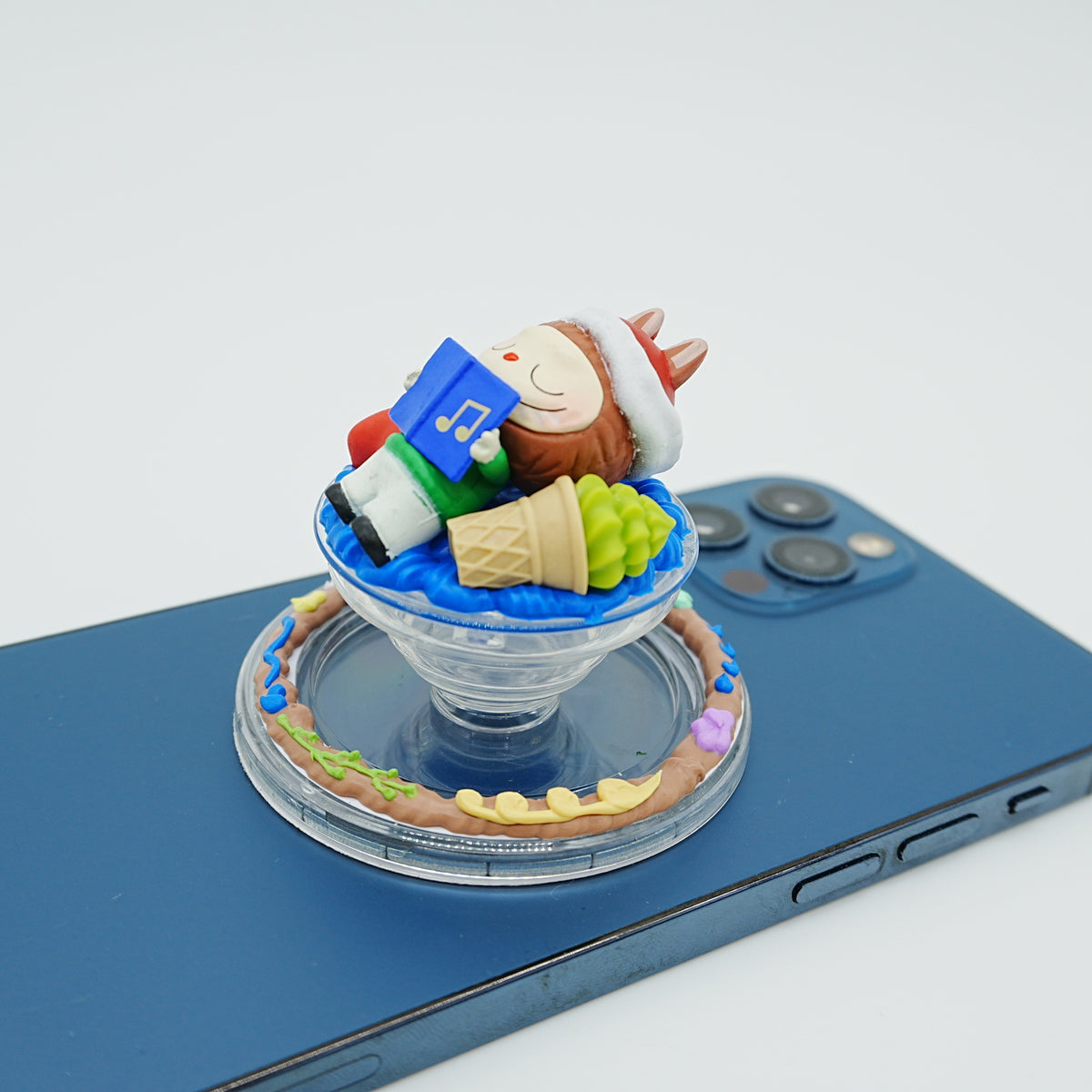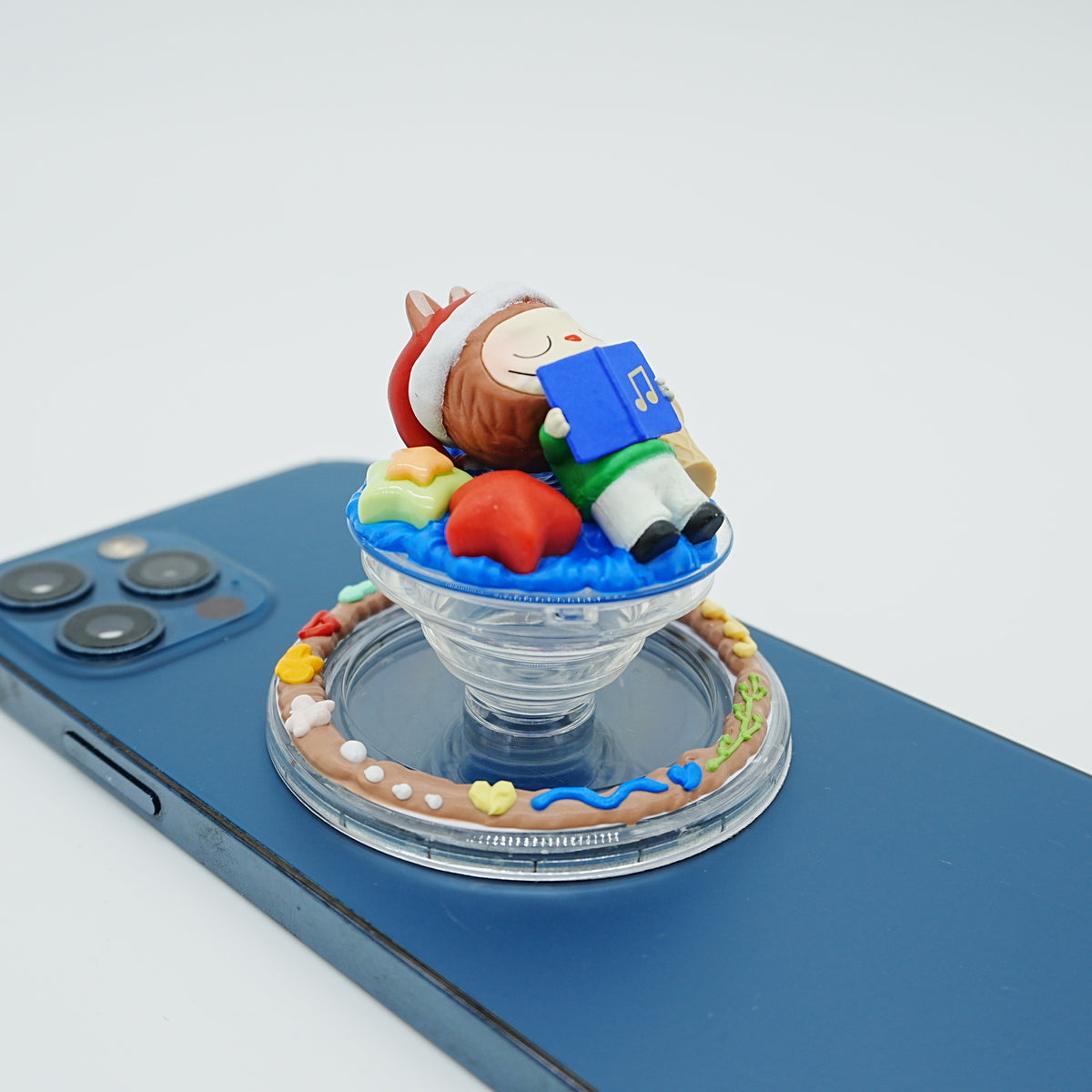 Handmade Cream Glue Phone Holder with labubu Mini Figure(blue)