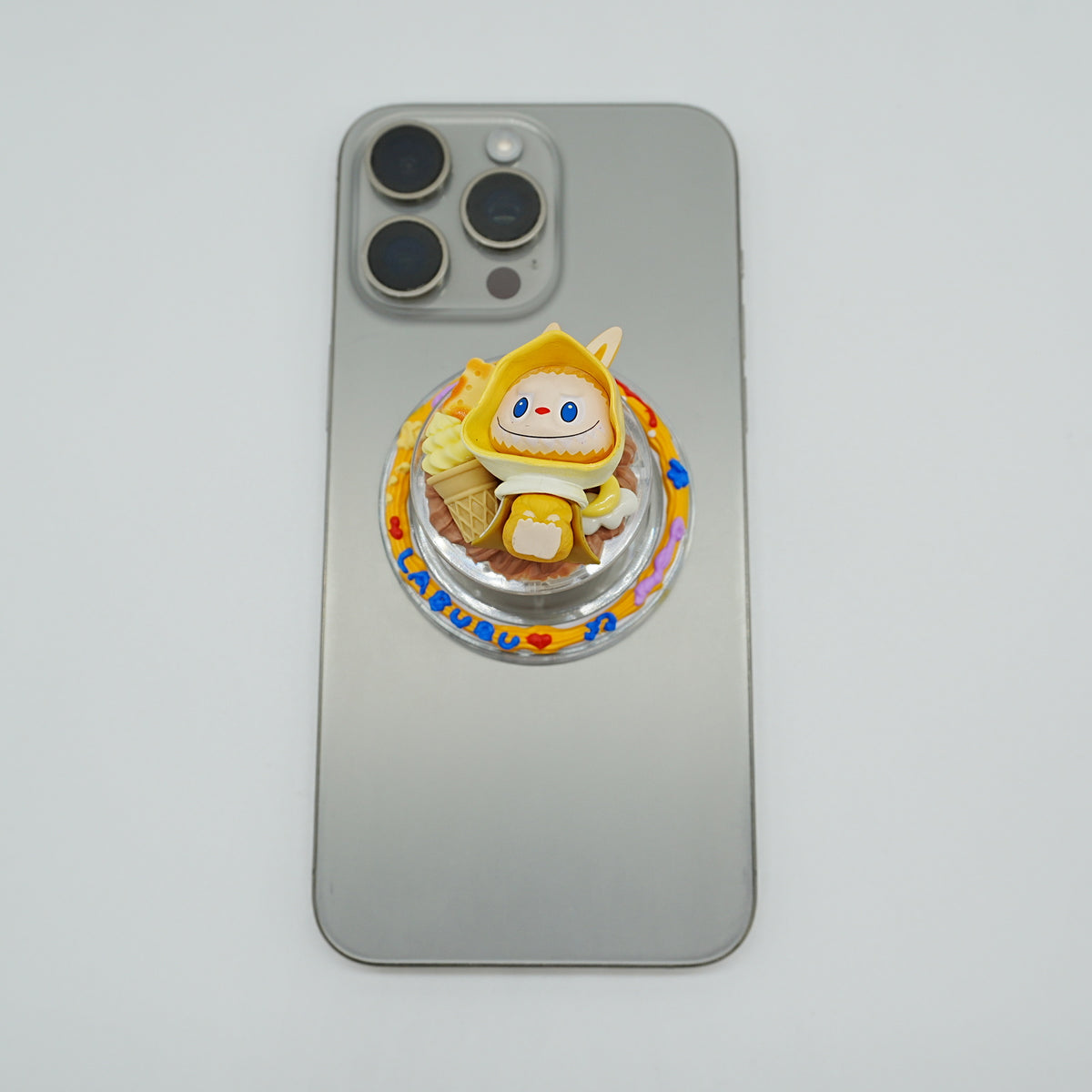 Give your phone a playful lift with this one-of-a-kind handmade air-cushion phone stand! Crafted with soft decorative cream glue and featuring an authentic Labubu mini figure, this stand adds a touch of kawaii charm to your desk or travel essentials.