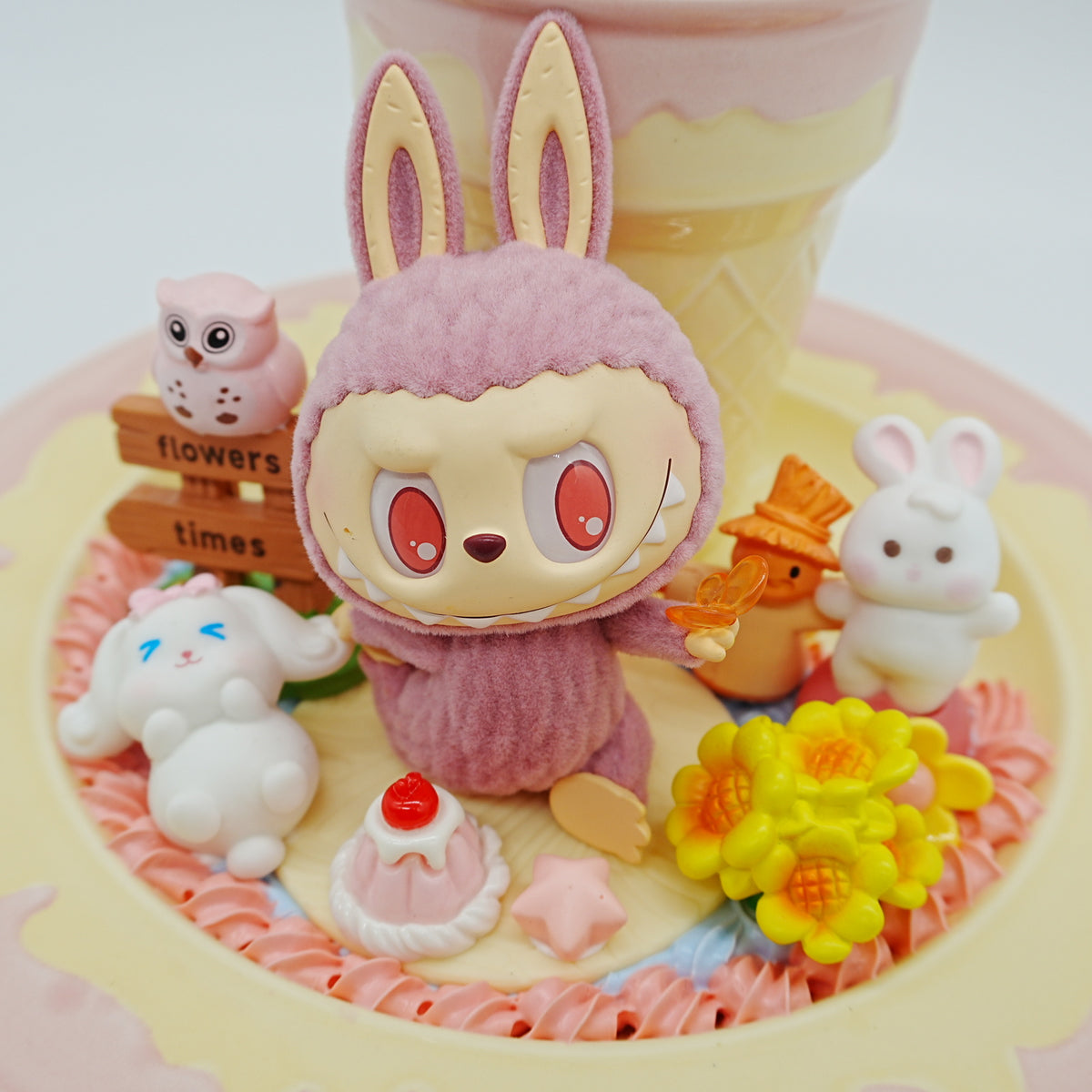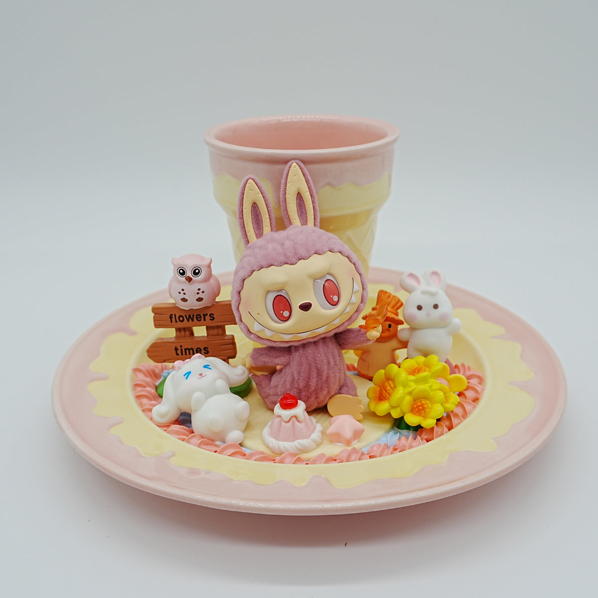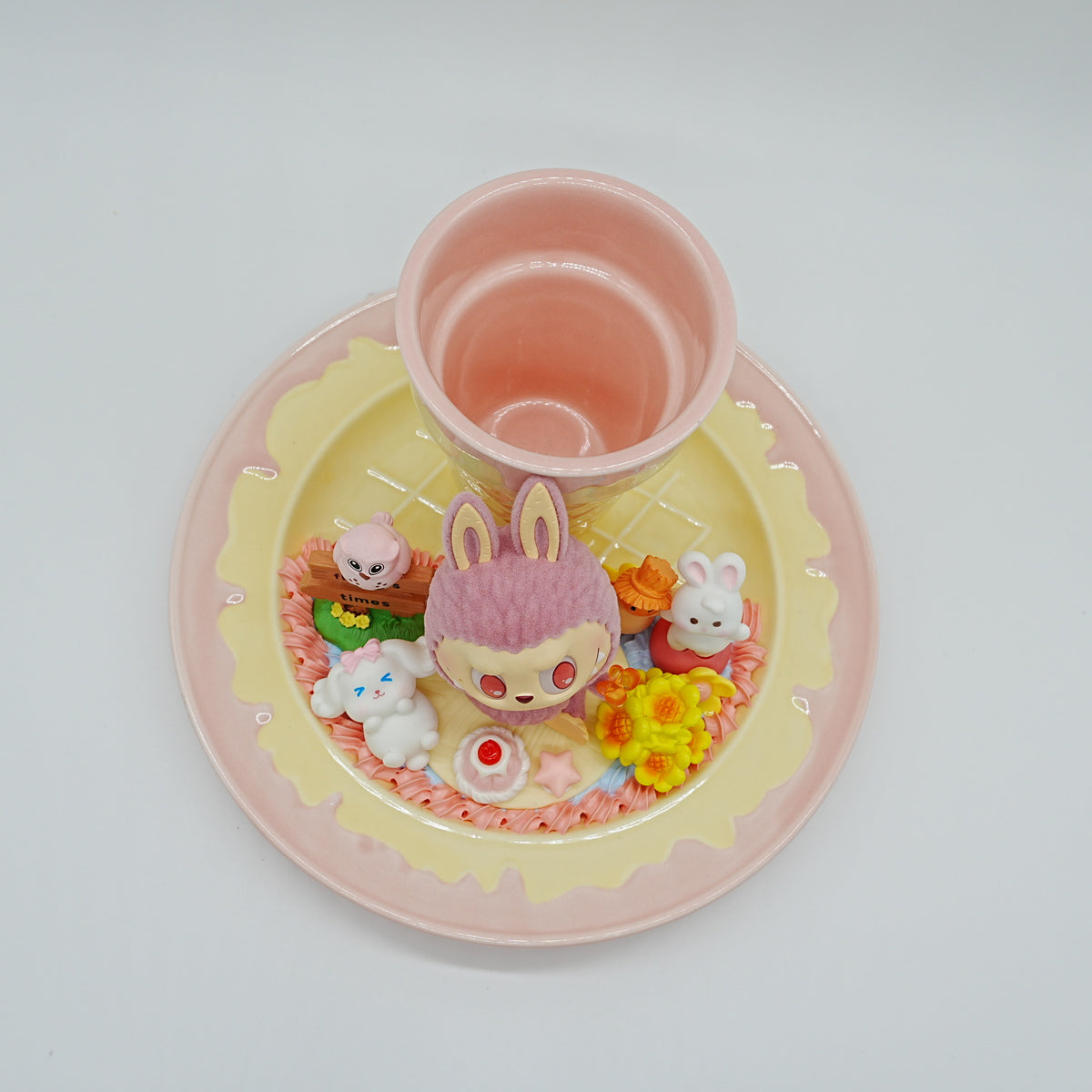 Handmade Cream Glue Tray Mug Set with Labubu Figure