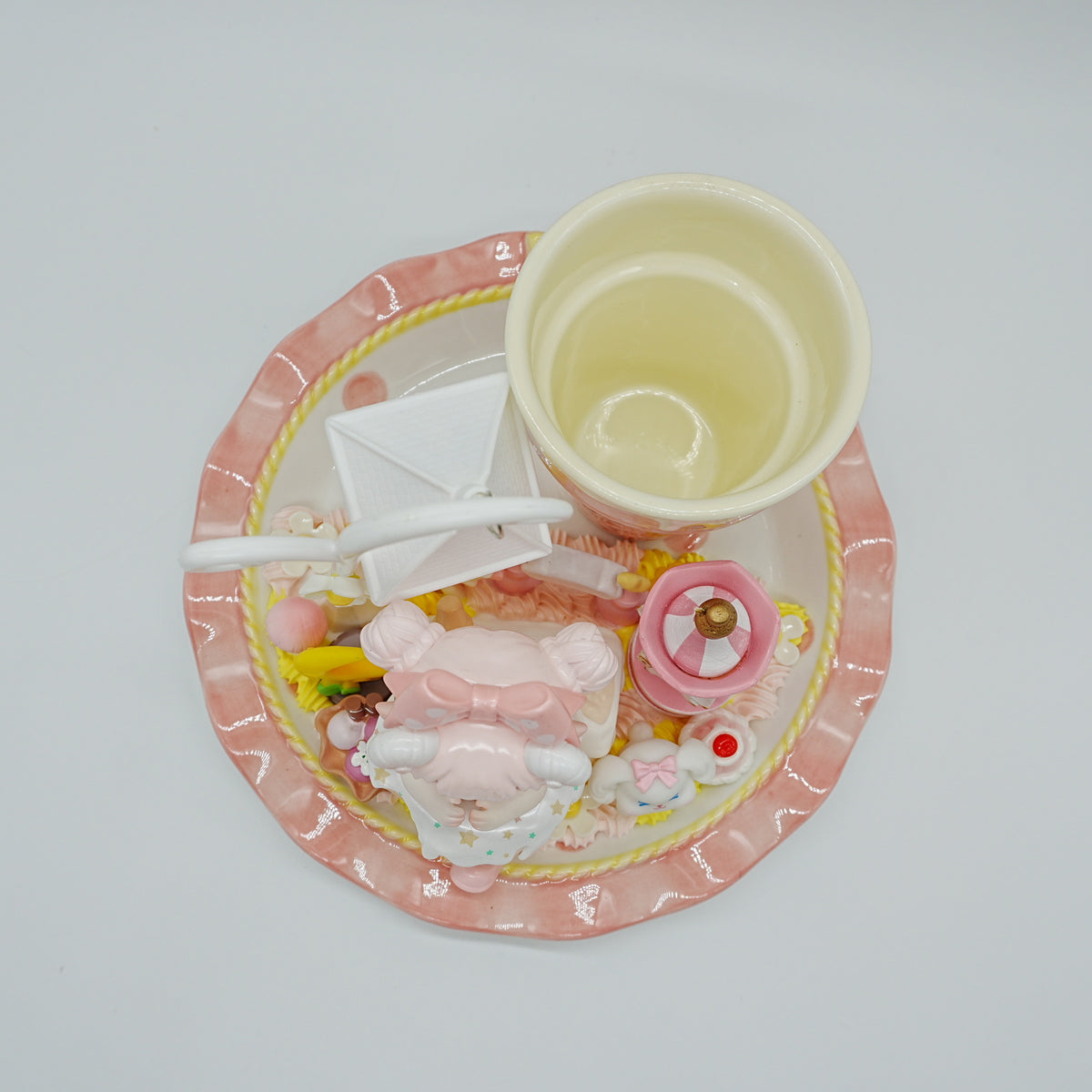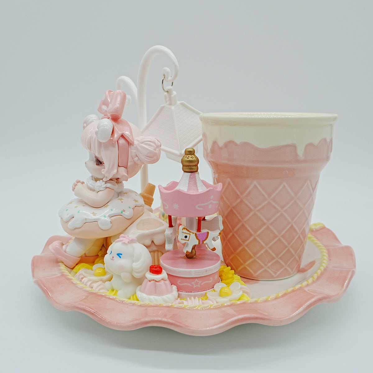 Handmade Cream Glue Tray Mug Set with Mimia Figure