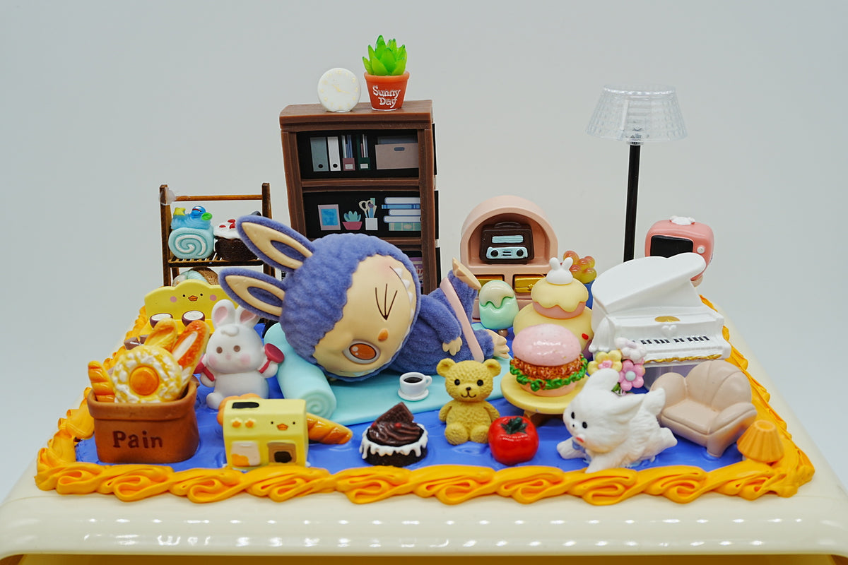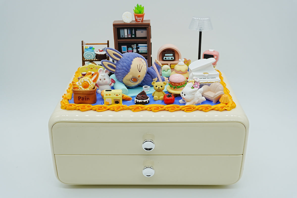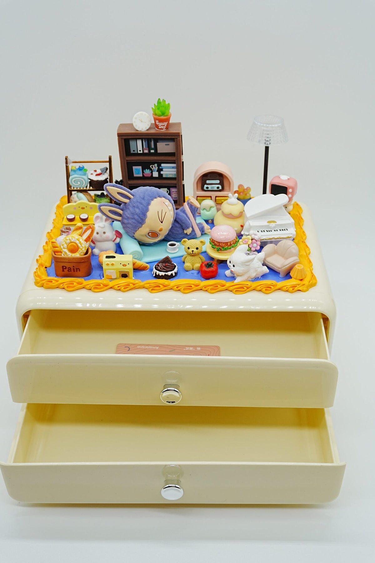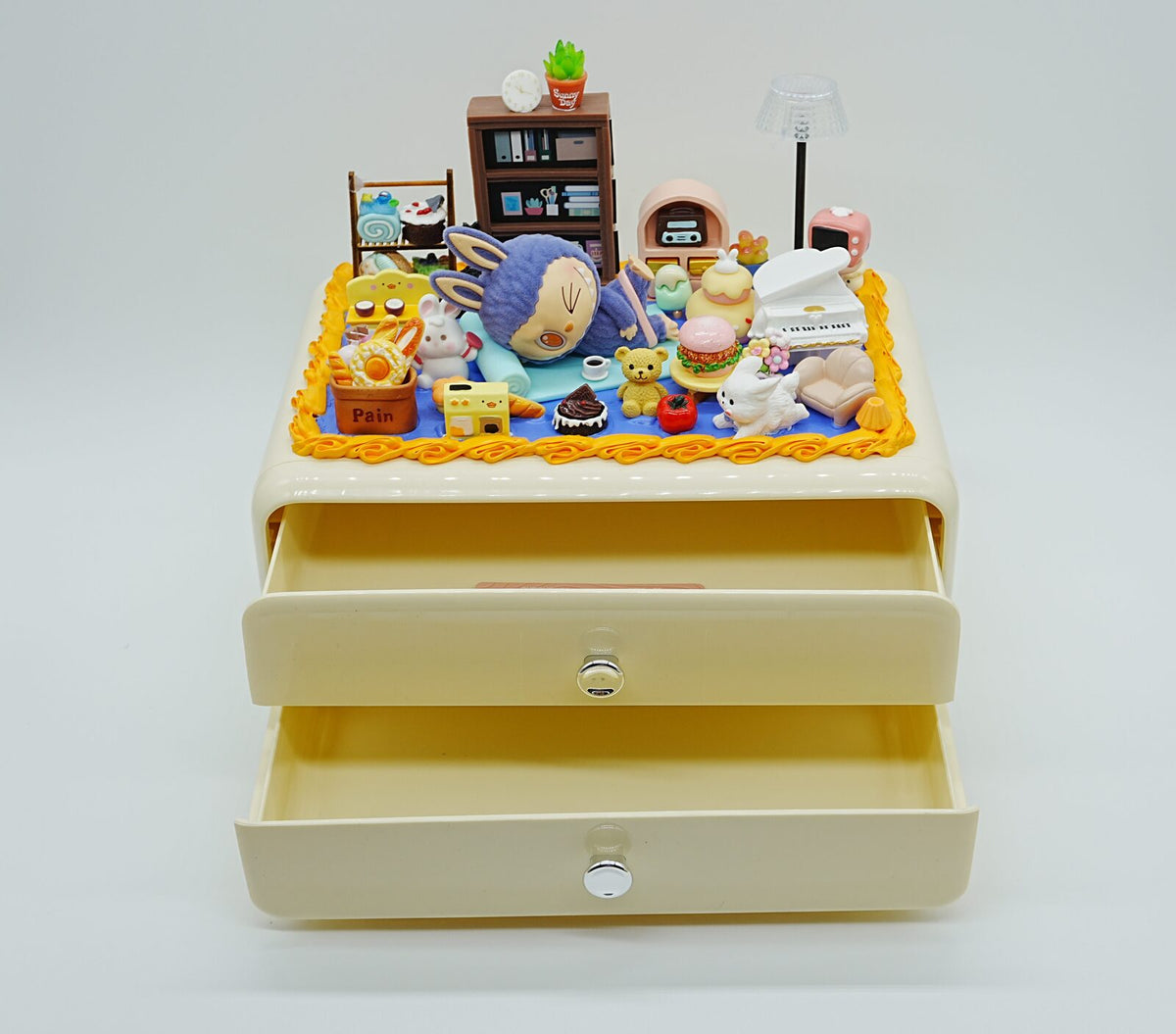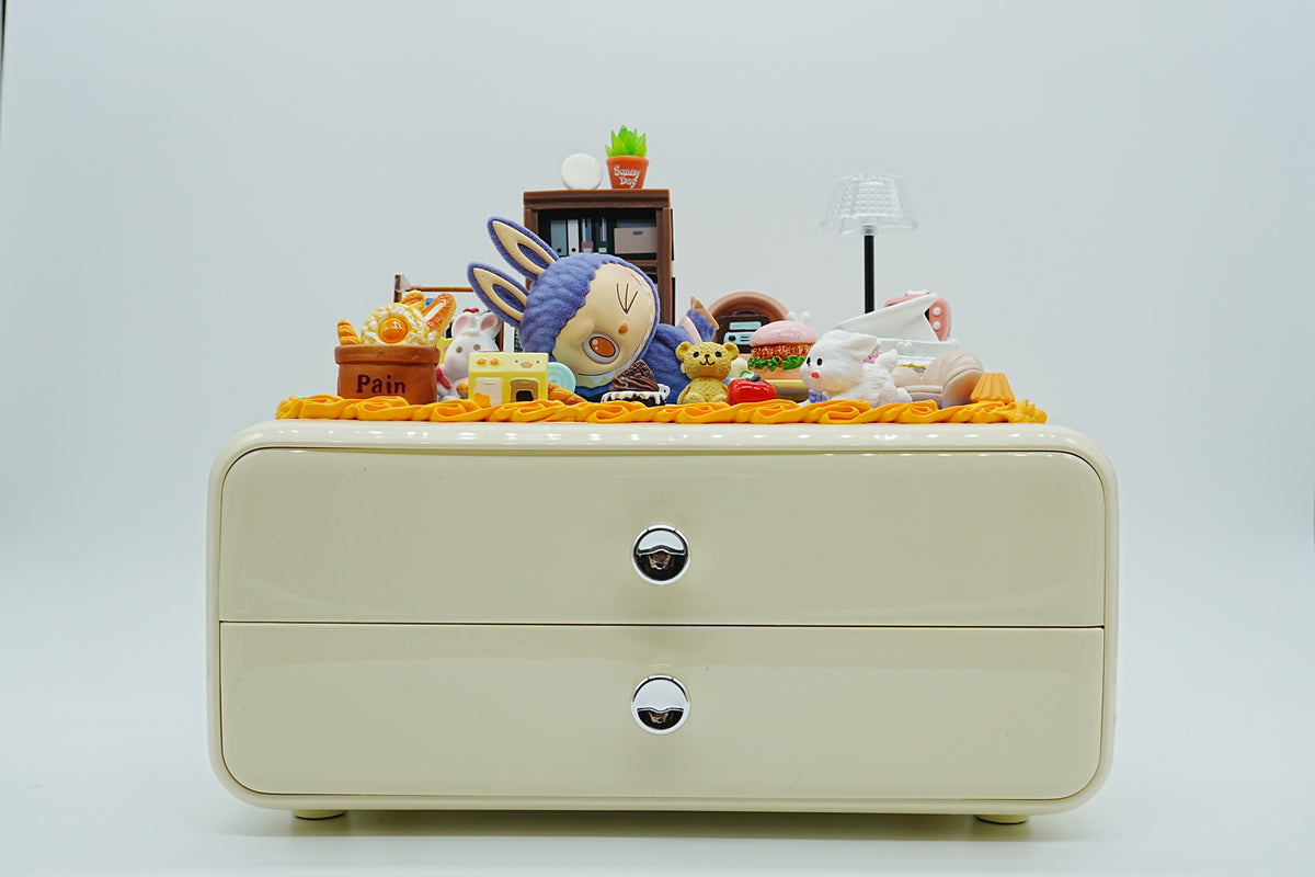 Handmade Two-Tier PVC Drawer Organizer with Cream Resin & Authentic Labubu Figure