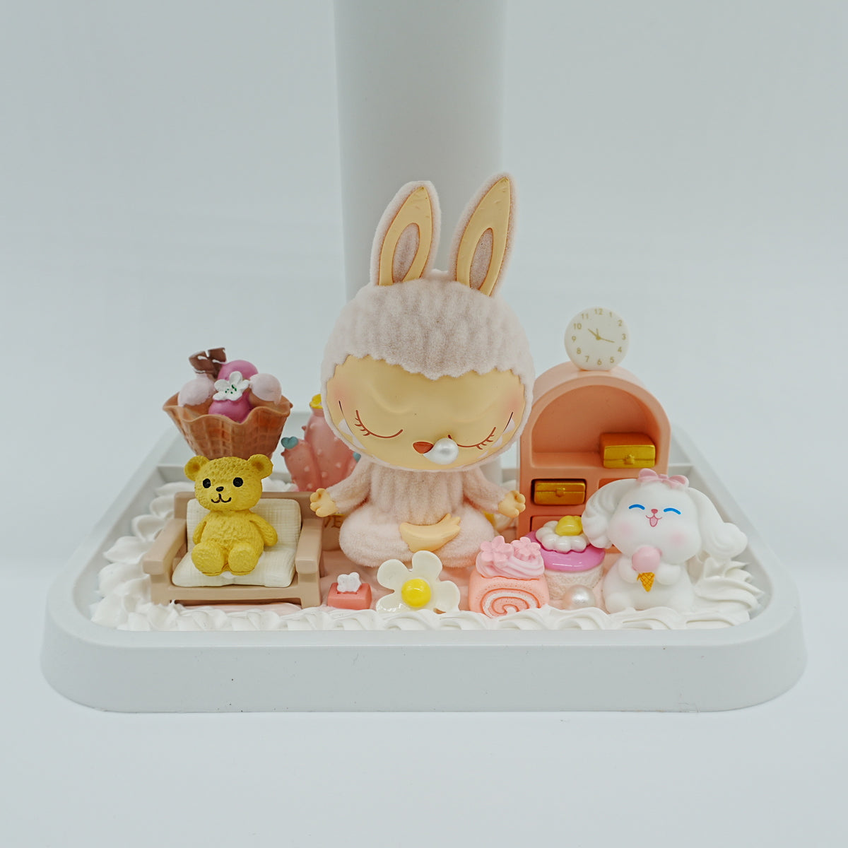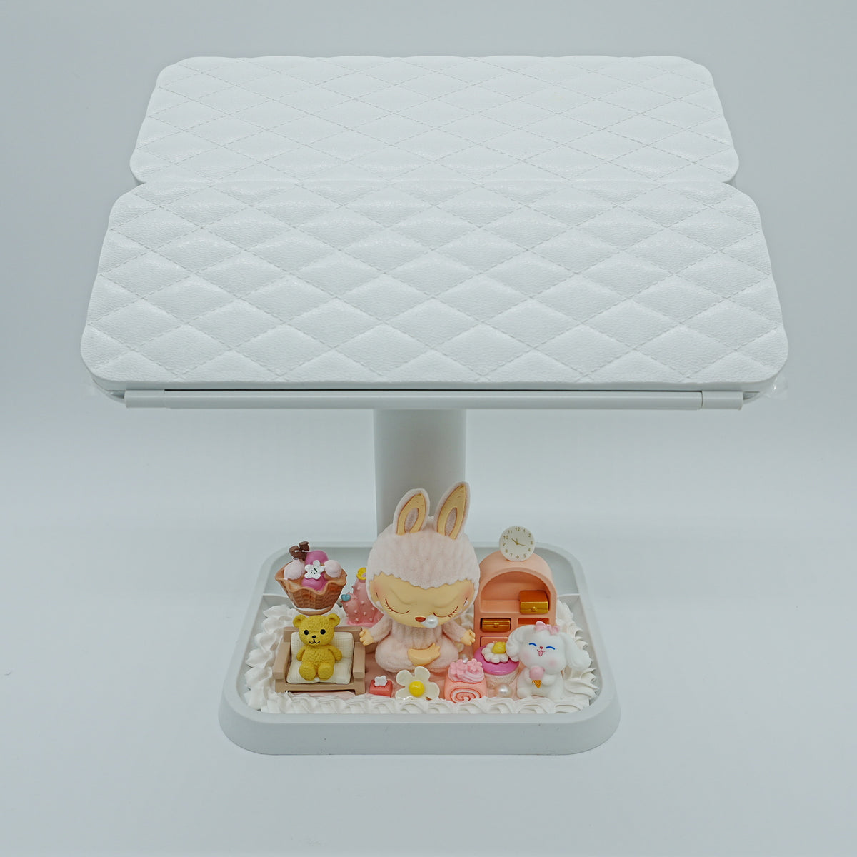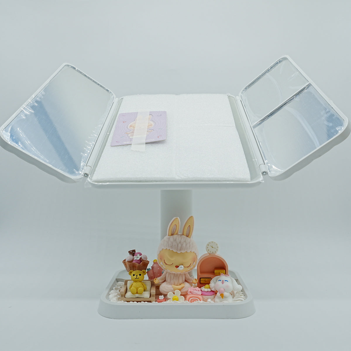 Rotating LED Makeup Mirror with Cream Glue & Labubu Figure (pink)