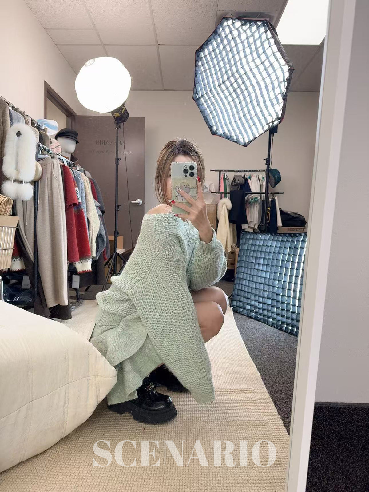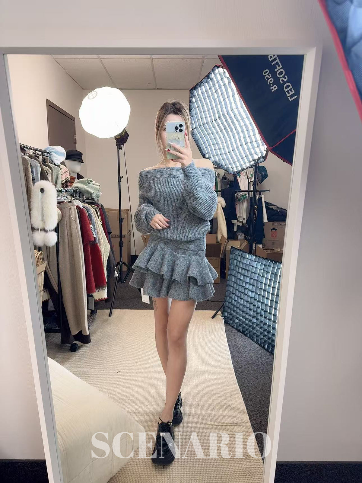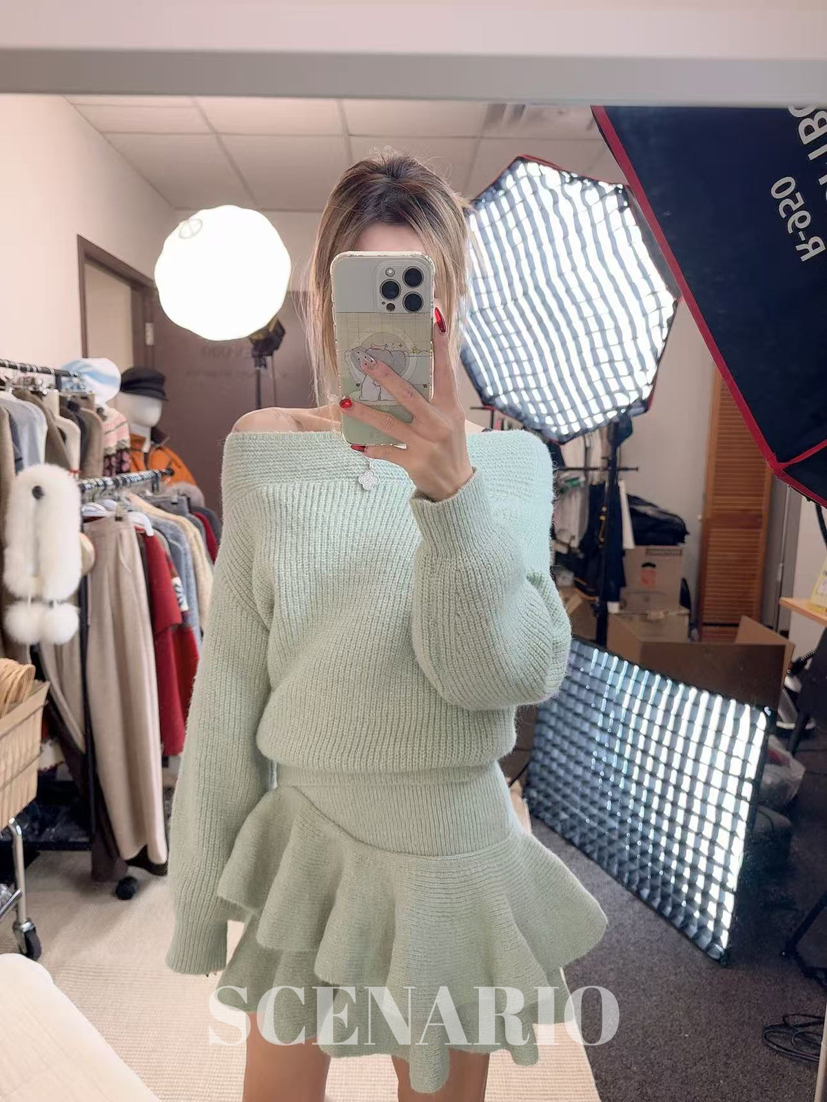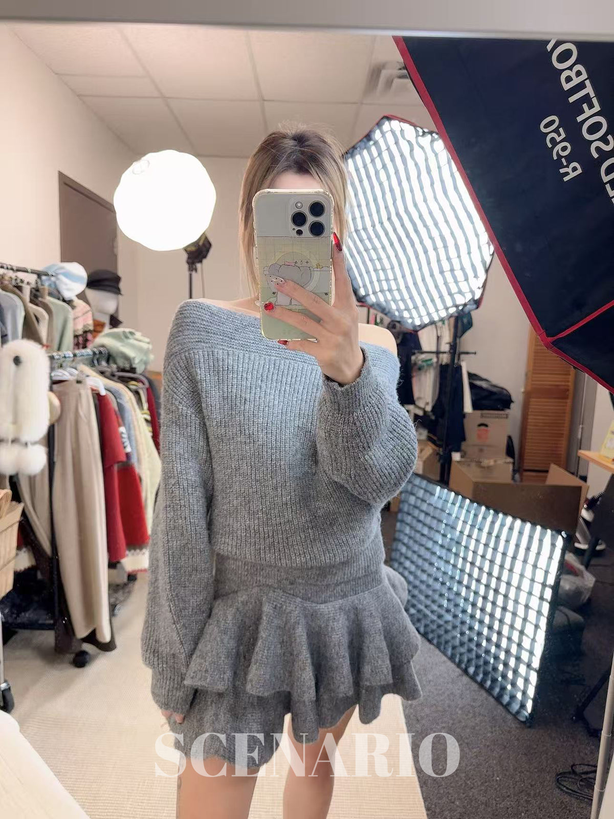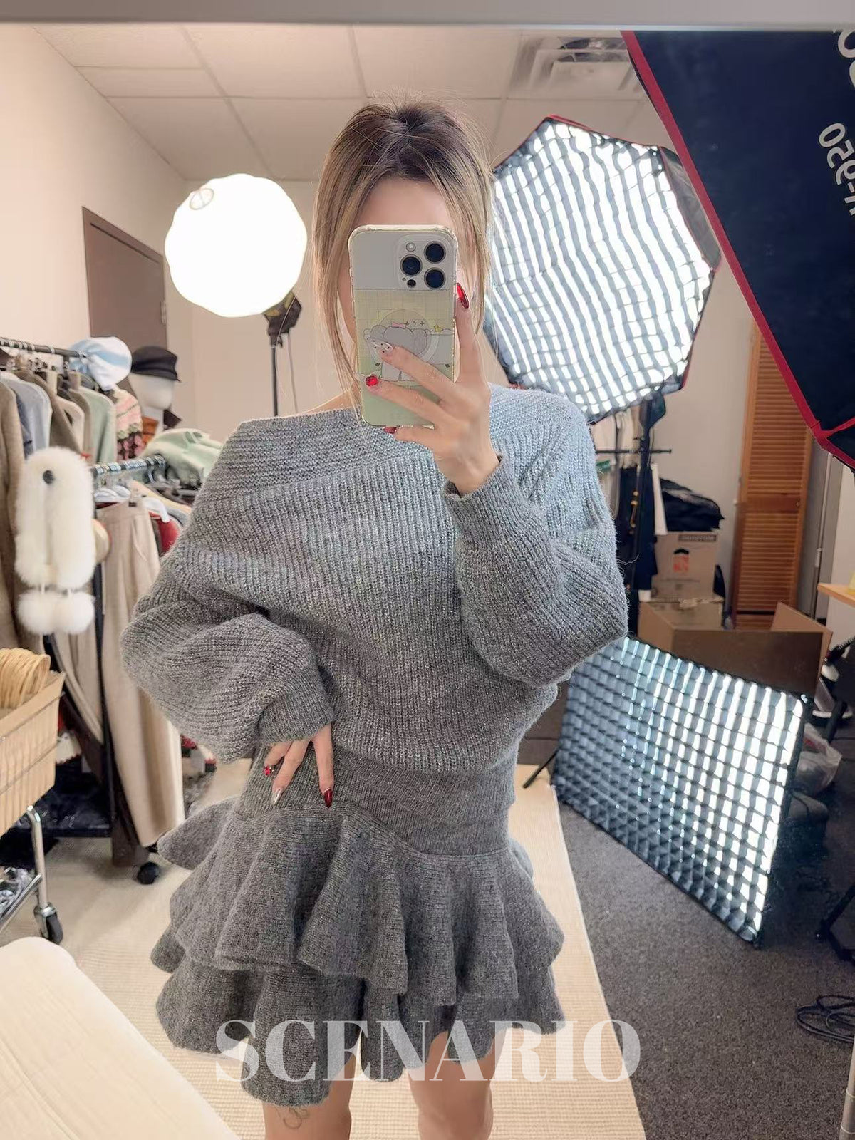 Inform when this item available SCENARIO Wool Cocoon & Ruffle Knit Set 2 Pieces-Two Colors