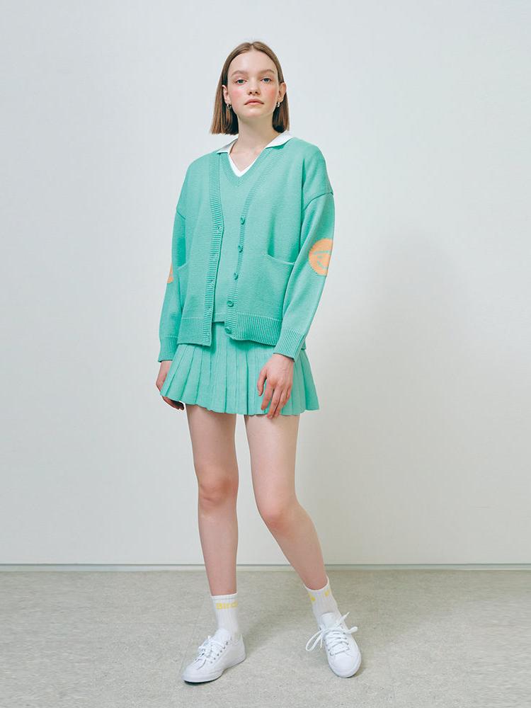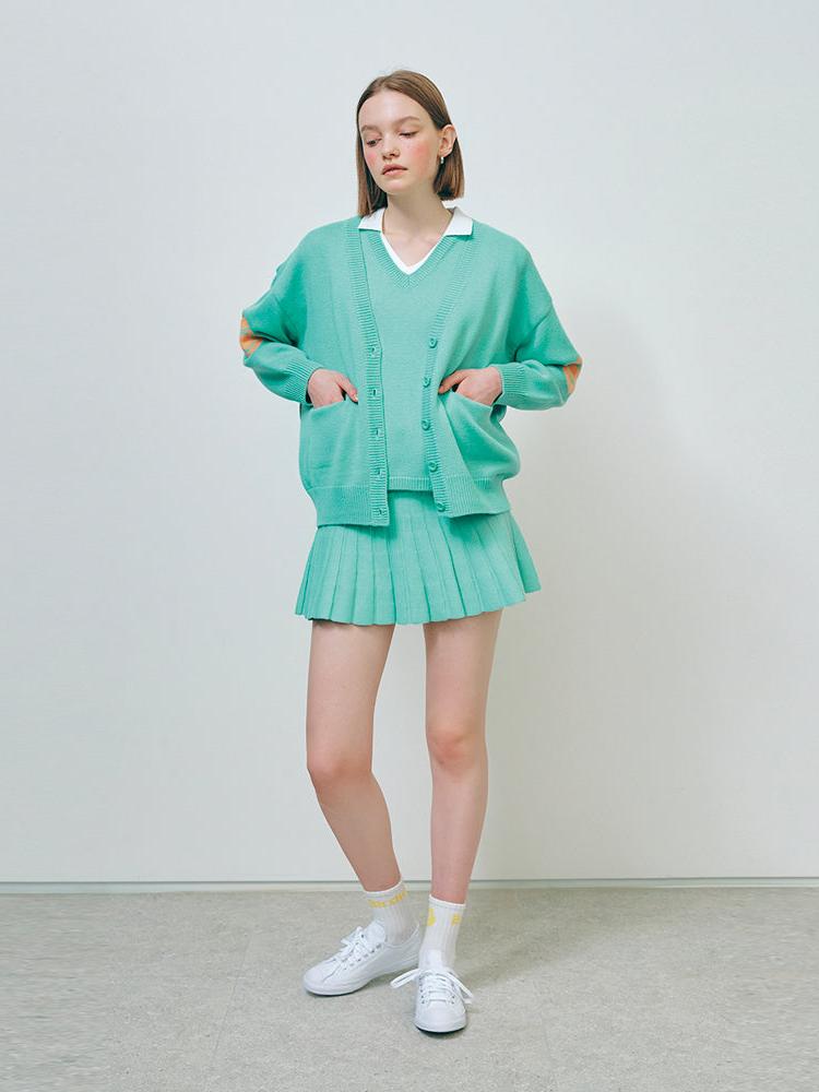 Pleated Knit Skirt- Half Milano knit in body panels helping fits- Comfortable Knitted built-in shorts- Elastic band in belt- Essential logo on the front- High-rise- rayon 52% nylon 20% polyester 28%Made in Koreaforest green