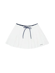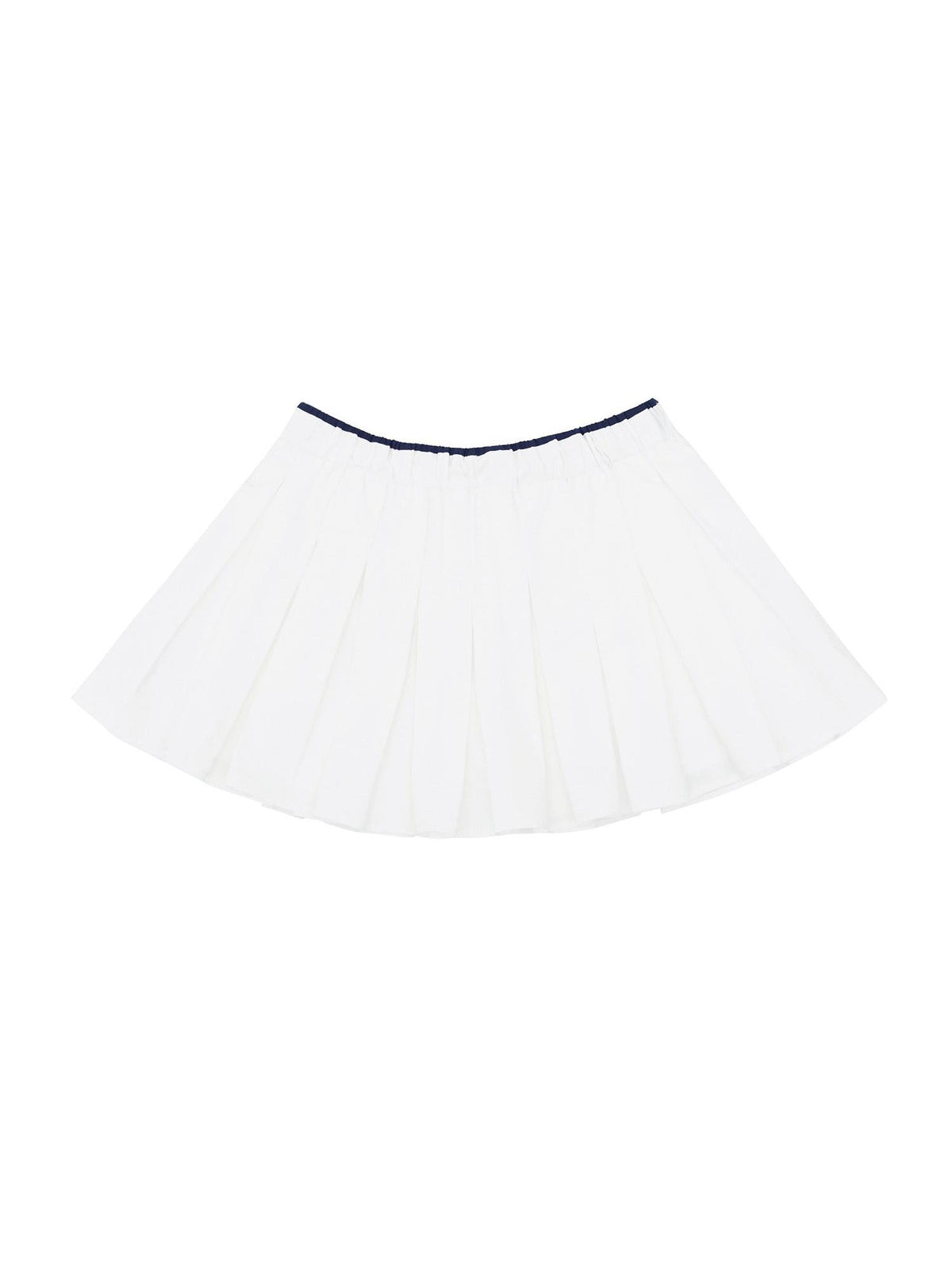 Made with stretchy and wrinkle-free fabric, this piece features a rayon blend for a cool touch. Navy color accents on the strings and waist add contrast, while Fibbee lettering embroidery detail on the front adds a subtle highlight. Rich pleats and an A-line silhouette create a lively and dynamic style. It can be widely used, from daily looks to golf and tennis outfits.
