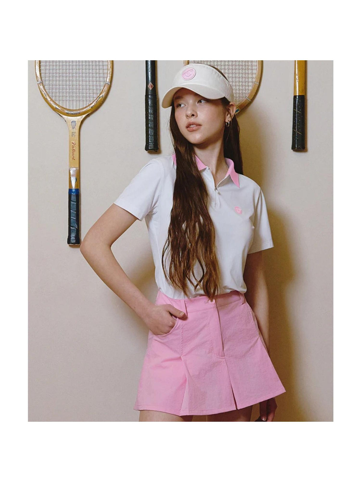 This functional zip-up short sleeve PK shirt is crafted from high-performance fabric featuring UV protection, a cool-touch feel, and quick-dry properties, making it ideal for active summer lifestyles. Designed in a slim fit, it incorporates side panel seams to enhance a sleek, flattering silhouette. A contrasting collar adds a stylish accent, while the zipper detail at the neckline gives it a sporty edge. The front is finished with a Piv'vee smile logo in a silicone print, combining functionality and style in one essential piece perfect for performance and everyday wear during the warmer months.