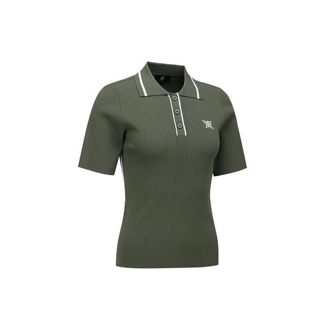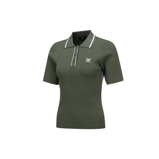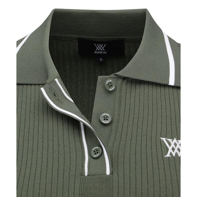 ANEW Golf Women's SM Stripe Texture Short Sleeve Sweater - Light Khaki
