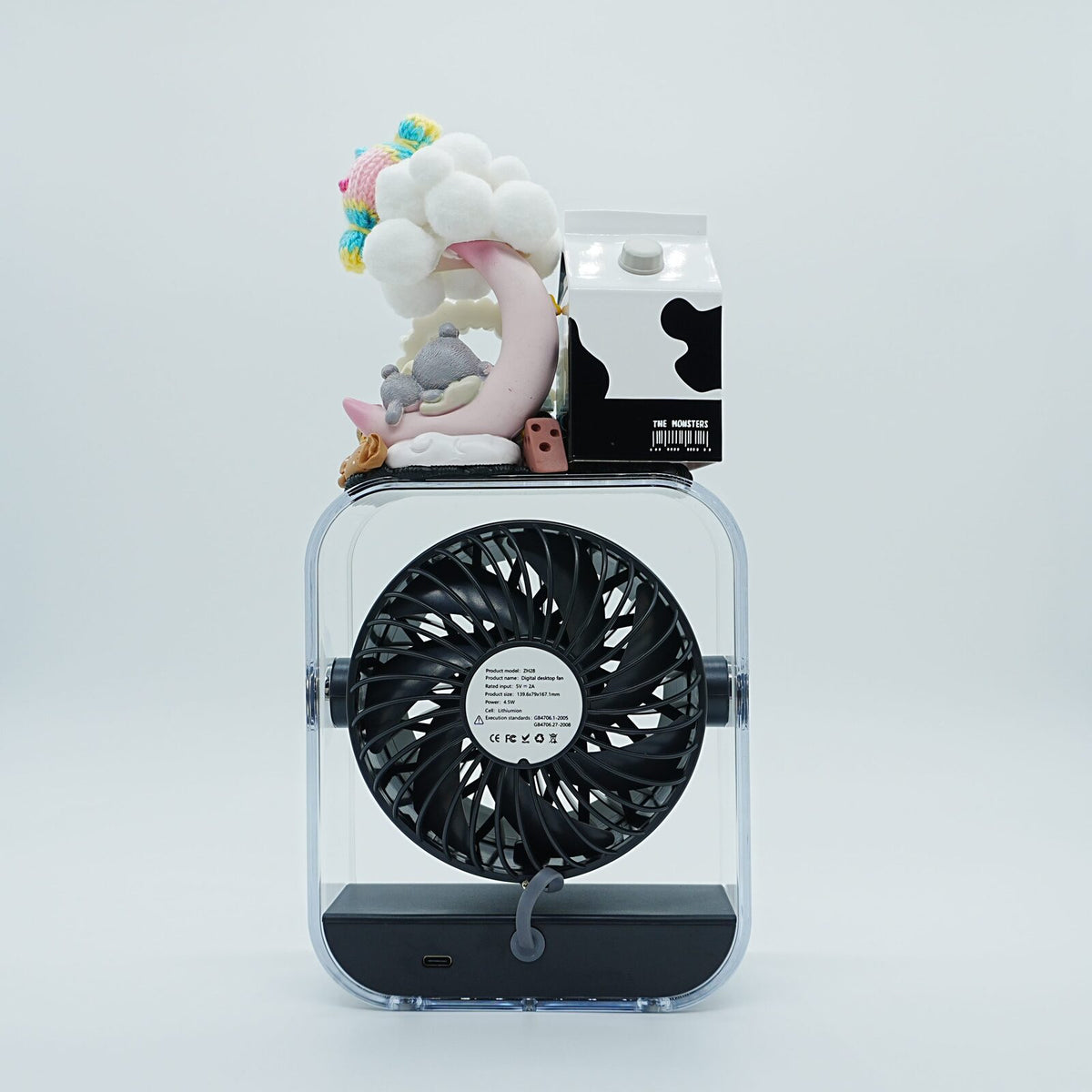 Cream Glue Desktop Fan with Labubu Latest Figure