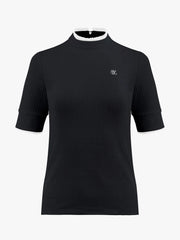 FAIRLIAR Frill High Neck 3/4 Sleeve T-Shirt-Black