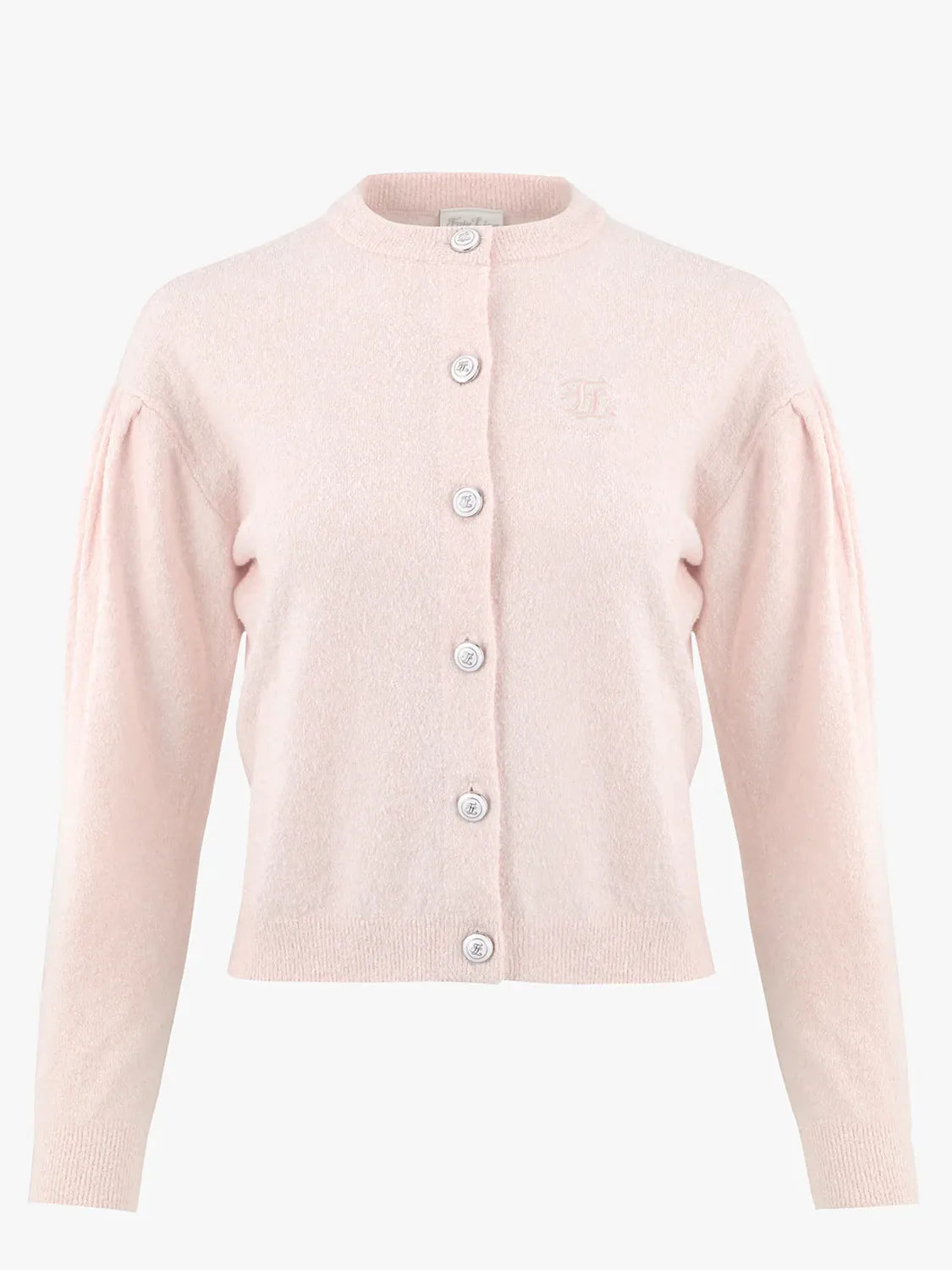 FAIRLIAR Puff Cropped Cardigan-Pink