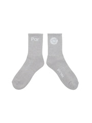 Cotton/nylon/spandex blend crew-socks jacquard Piv'vee logo and Par logo at rib knit cuffs. Athletic ribbed upper footbed piv'vee lettering logo cushioned footbed one size fits most.